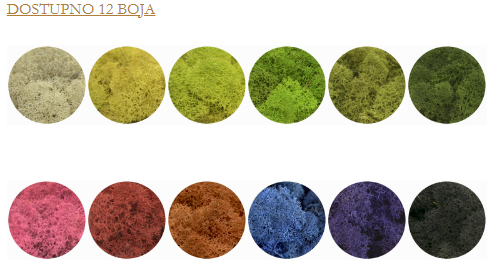 U ponudi imamo 12 vrsta boja lišaj mahovine.
