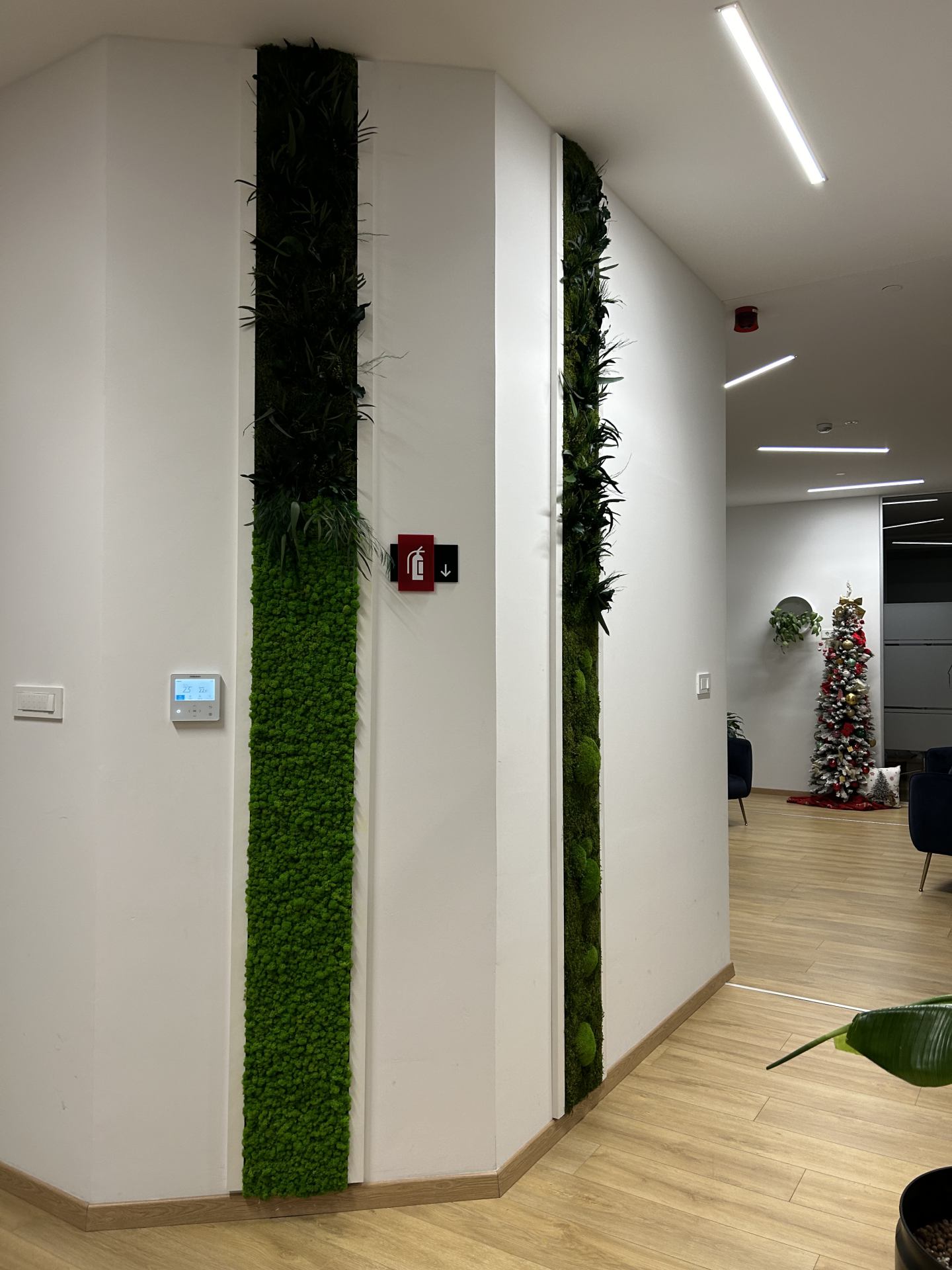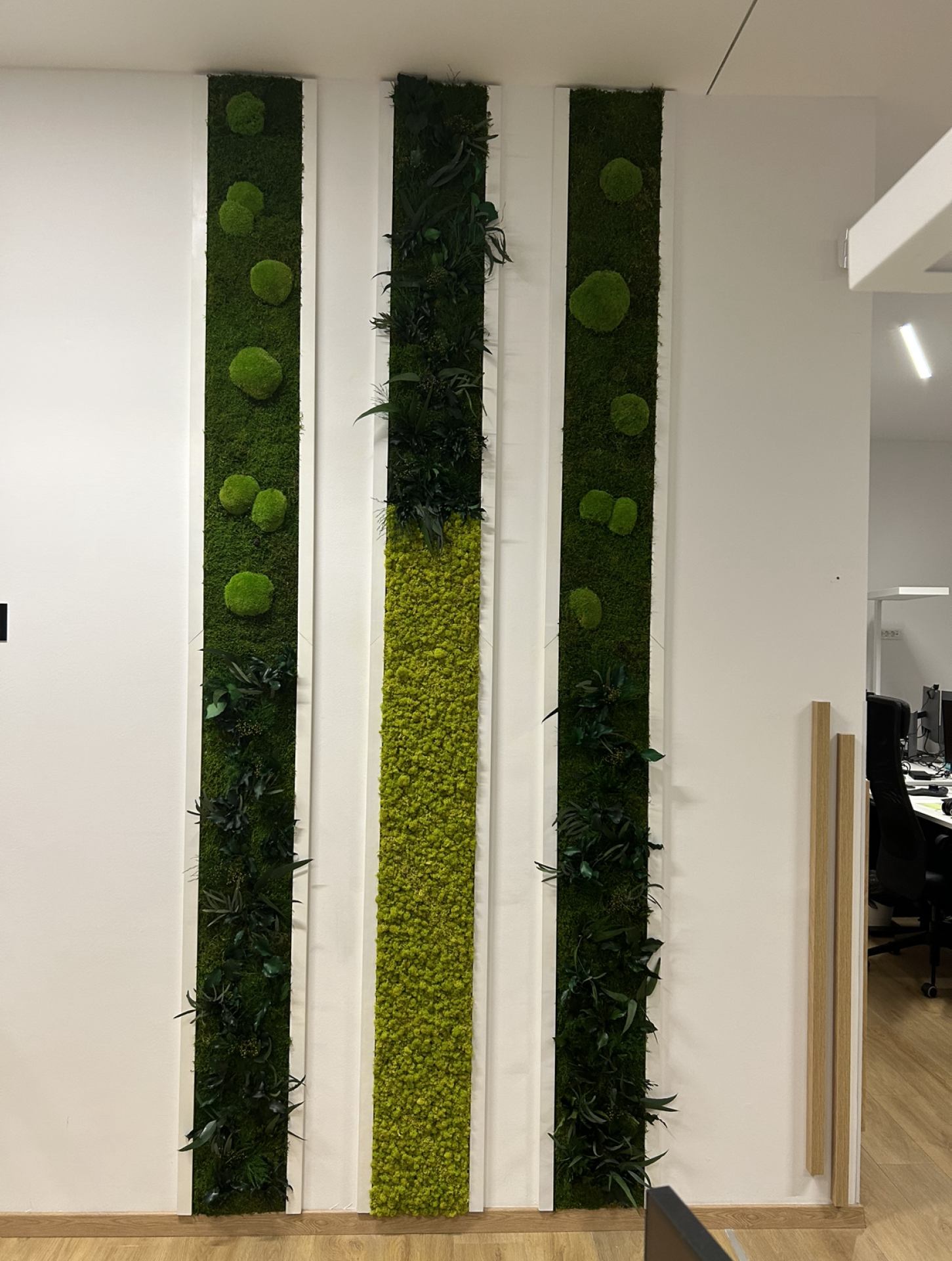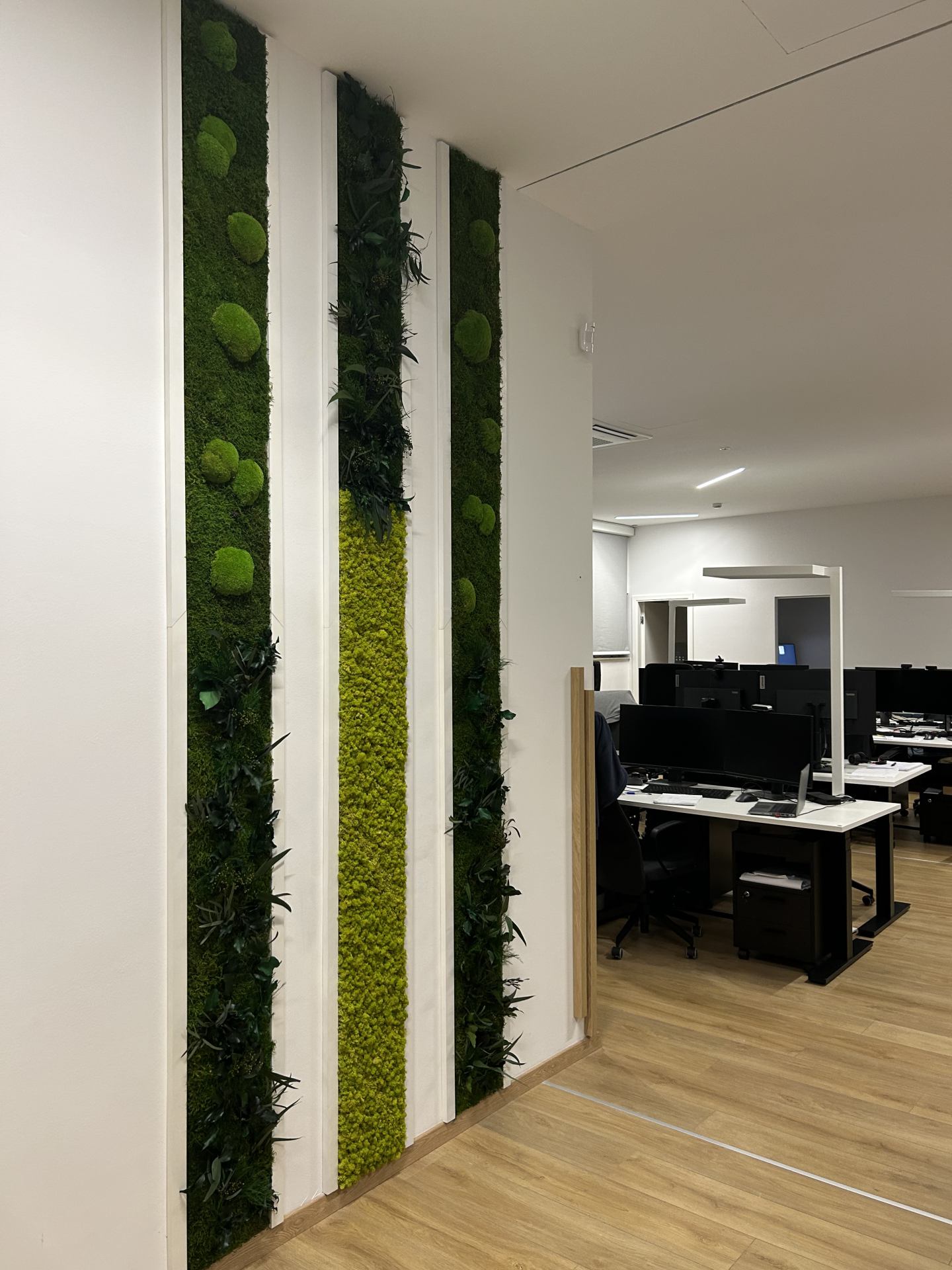 U projektu Lürssen Design Rijeka, zeleni paneli pažljivo su uklopljeni u postojeći dizajn interijera. Njihova modularna struktura omogućuje fleksibilna rješenja prilagođena prostoru, dok prirodni izgled zelenila doprinosi modernom i profesionalnom dojmu. Time se dodatno naglašava identitet tvrtke i njezina orijentacija prema kvaliteti, inovacijama i održivom poslovanju.